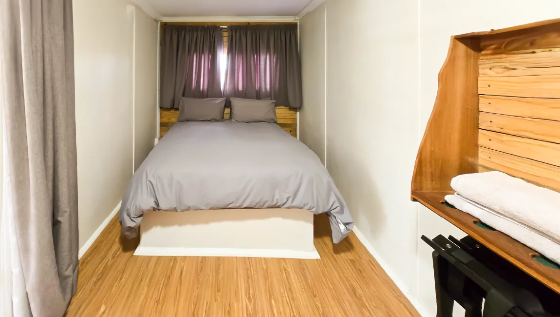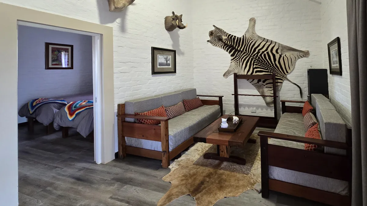Our Rustic Bush Camp features a bedroom with one double bed, two singles, and a sofa bed in the living area. It includes a fully equipped kitchen, private braai area, and boma fire pit. All accommodations are self-catering, and each night’s stay includes two bags of wood.