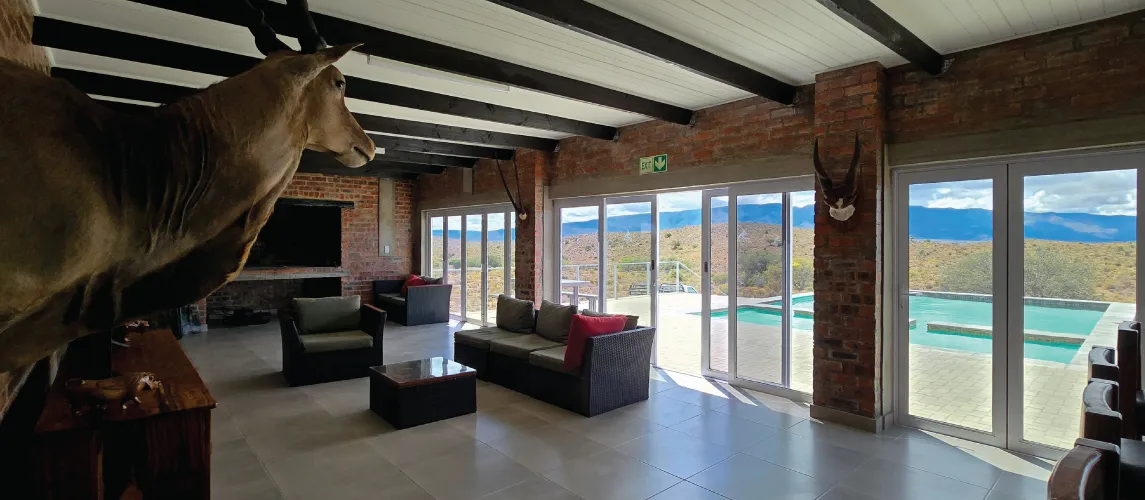 Nestled amidst the stunning landscapes of Bellair Wild, our lapa offers a tranquil retreat for relaxation and social gatherings. This versatile space provides panoramic views of the surrounding wilderness, making it perfect for dining, events, or simply unwinding. The lapa is equipped with modern amenities, including a fully functional kitchen and comfortable seating areas, ensuring every visit is enjoyable and memorable. Ideal for both intimate gatherings and larger groups, it serves as the perfect backdrop to your hunting adventures. The lapa and the swimming pool are included in the price.